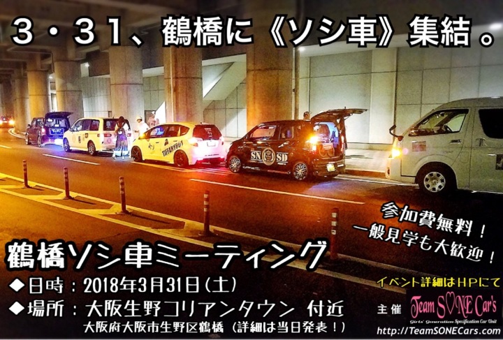 3月31日(土)、コリアンタウンでおなじみの大阪・鶴橋にて、ソシ車ミーティングが開催されました!